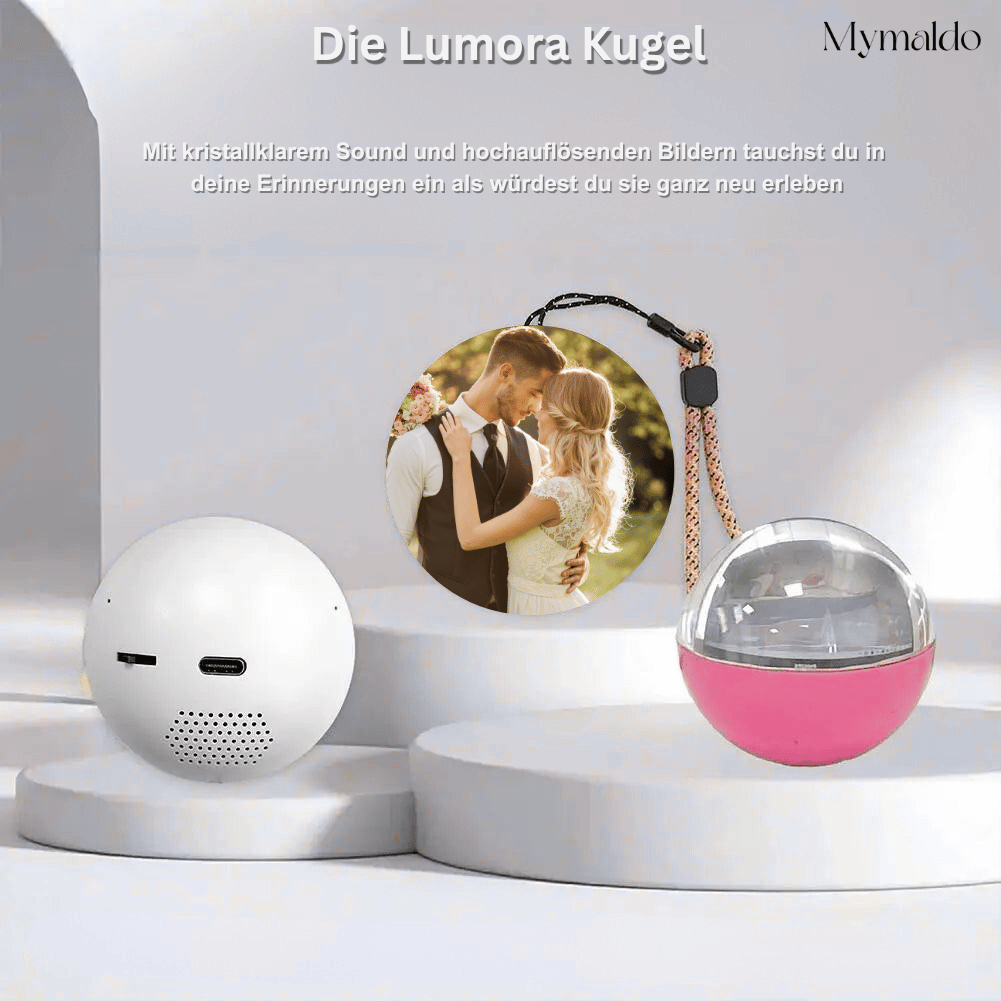 Die Lumora Kugel: macht Erinnerungen lebendig. Videos oder Fotos einfach hochladen und die Momente wieder erleben, die man so sehr vermisst hat.